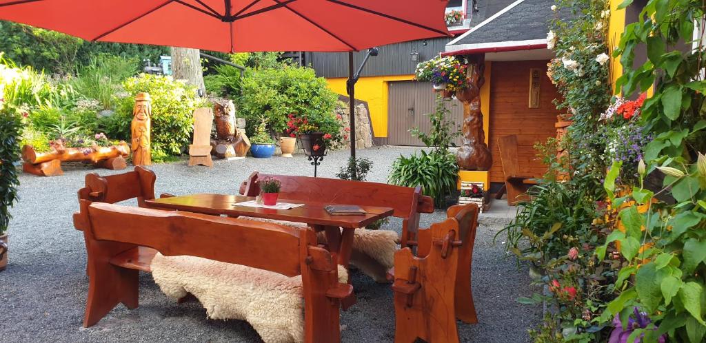 Mit einem Garten, einer Terrasse und einem Restaurant bietet die Unterkunft Haus zur alten Bimmelbahn Übernachtungsmöglichkeiten in Kurort Jonsdorf mi