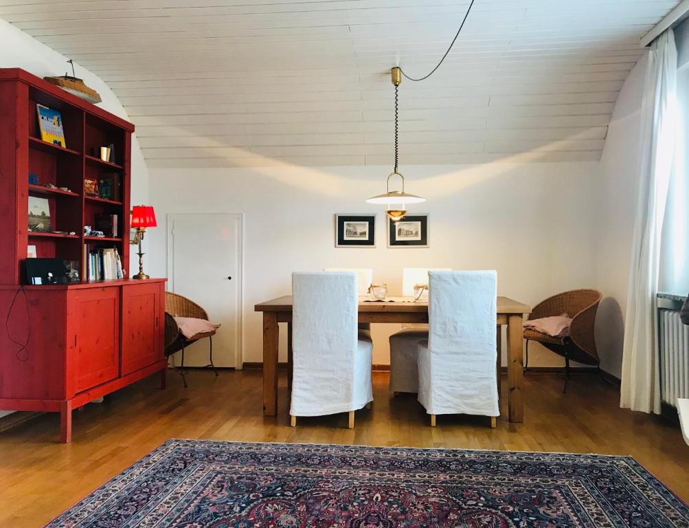 Das Haus Tütje in Juist liegt 400 m vom Strand Juist, 1,1 km vom Hafen von Juist und 2,9 km vom Küstenmuseum Juist entfernt. Diese Unterkunft am Strand verfügt über einen Garten. Das Apartment verfügt über 3 Schlafzimmer, 1 Bad, Bettwäsche, Handtücher, einen Flachbild-Kabel-TV, einen Essbereich, eine voll ausgestattete Küche und eine Terrasse mit Gartenblick. Nutzen Sie auch den Fahrradverleih des Apartments. Der Hammersee liegt 4,1 km vom Haus Tütje entfernt.