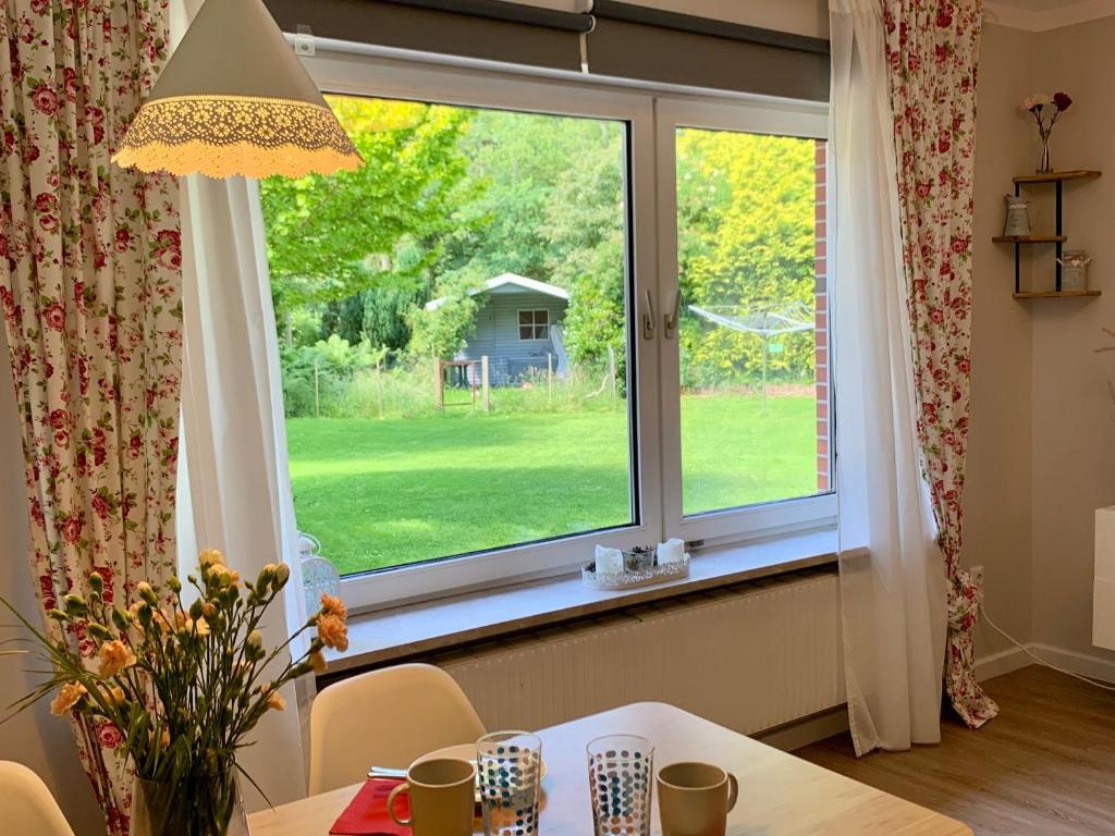 Whg. 4 Auf kleinem Raum eine gemütliche moderne 2-Zimmerwohnung im Erdgeschoss mit Panoramafenster mit Blick auf den Garten, im Frühjahr 2019 komplett saniert. Wohn-Essraum mit integrierter Pantry-Küche und moderner Schlafcouch(Liegefläche1,40x2,00m), Duschbad WC, 1 Schlafzimmer mit Doppelbett. TV mit HDMI-Anschluß, Radio, Nichtraucher, 1 Hund auf Anfrage erlaubt, meldepflichtig,- es wird eine Gebühr erhoben. Gemeinschaftsgarten, Kinderfreundliches Haus