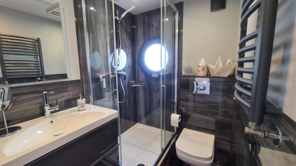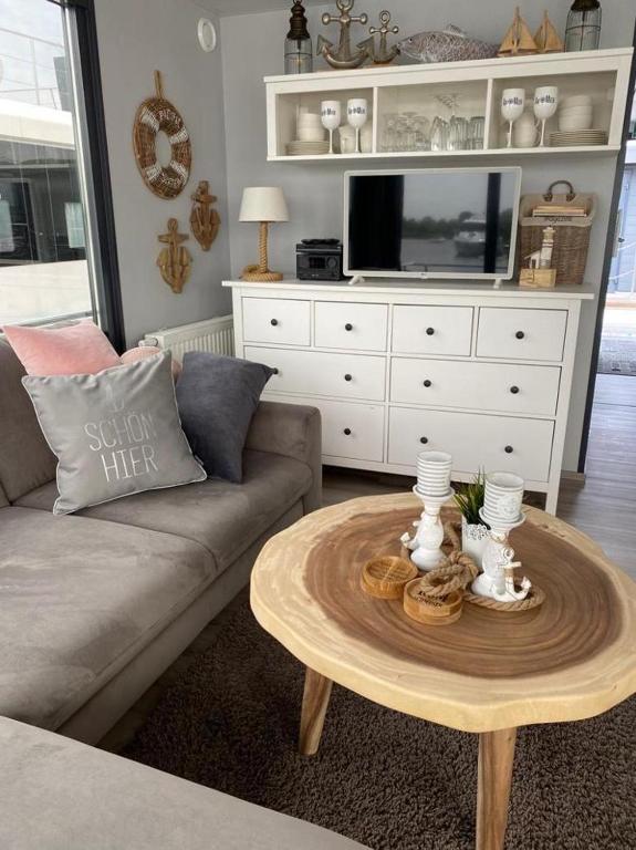 Das Hausboot La Mare Emma in Weyhe bietet ein Restaurant, Wassersportmöglichkeiten und eine Terrasse. Die Unterkunft befindet sich 24 km von Worpswede