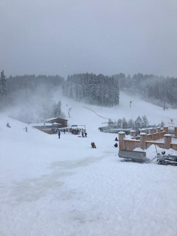 Das Ski in Ski out Neuastenberg erwartet Sie mit einer Terrasse und Gartenblick in Winterberg in Nordrhein-Westfalen. Das Apartment mit kostenfreien P