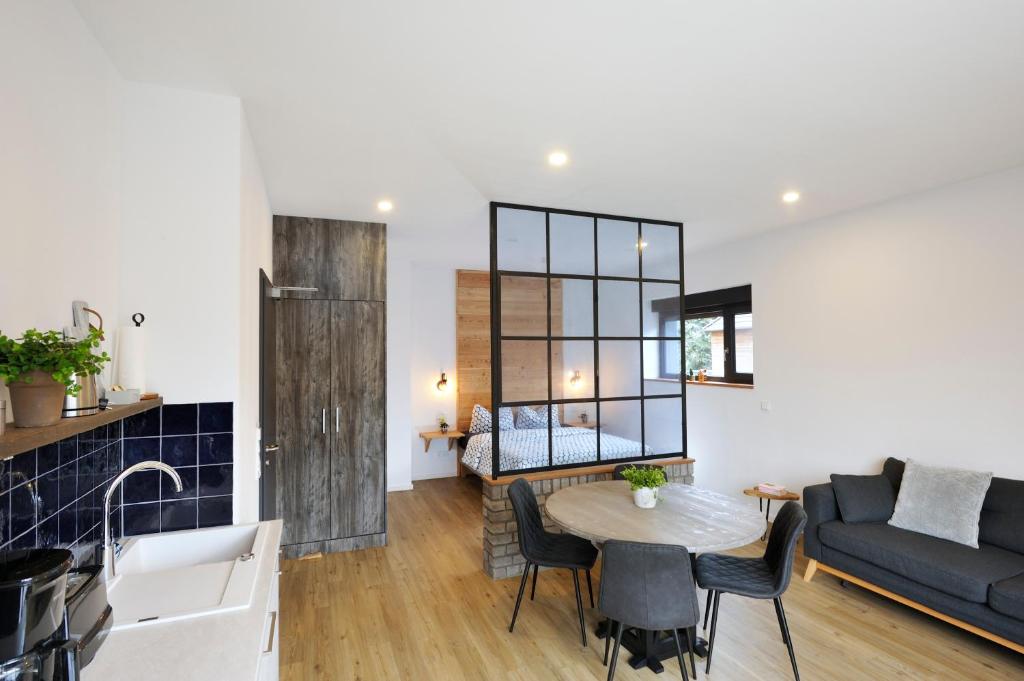 Alle Unterkünfte verfügen über einen Balkon oder eine Terrasse, eine Küche mit einem Geschirrspüler und einem Backofen sowie ein eigenes Bad. Eine Mikrowelle, ein Toaster, ein Kühlschrank und eine Kaffeemaschine sind ebenfalls vorhanden. Ein Wohnzimmer und ein Essbereich sind ebenfalls vorhanden.