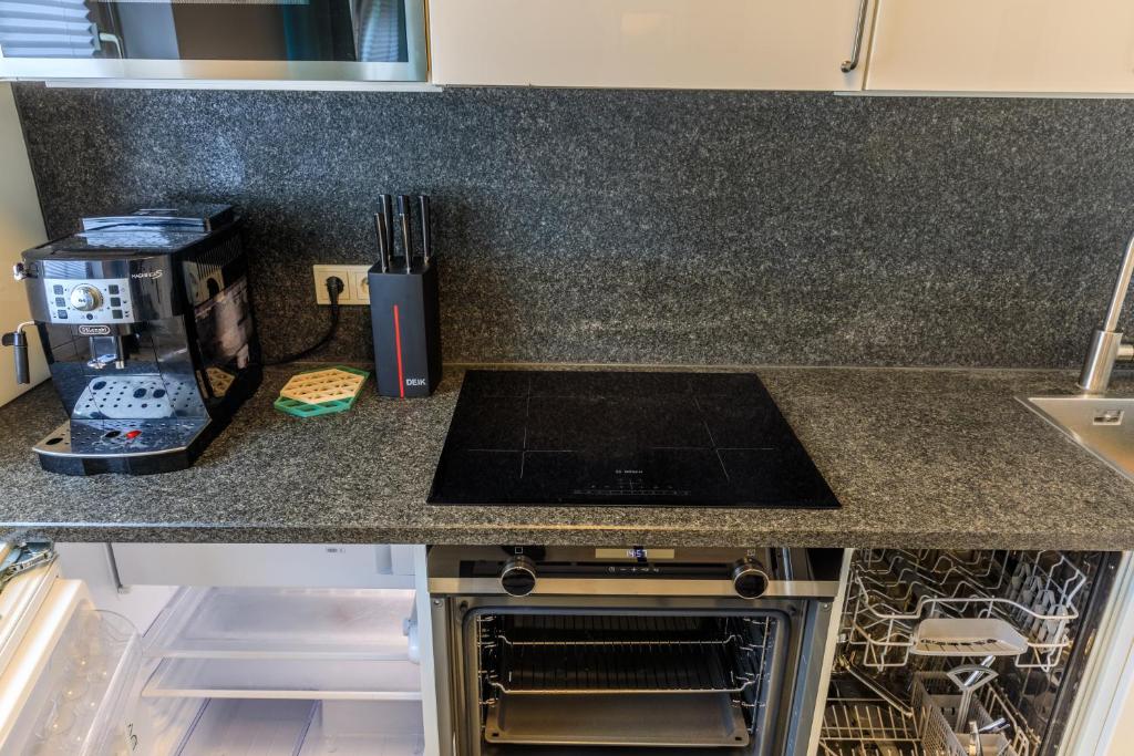 Jede Unterkunft verfügt über eine komplett ausgestattete Küche mit einem Geschirrspüler, ein Wohnzimmer mit einem Sofa und einem Flachbild-TV sowie ein eigenes Bad. Eine Mikrowelle, ein Kühlschrank, ein Backofen und eine Kaffeemaschine sind ebenfalls vorhanden.