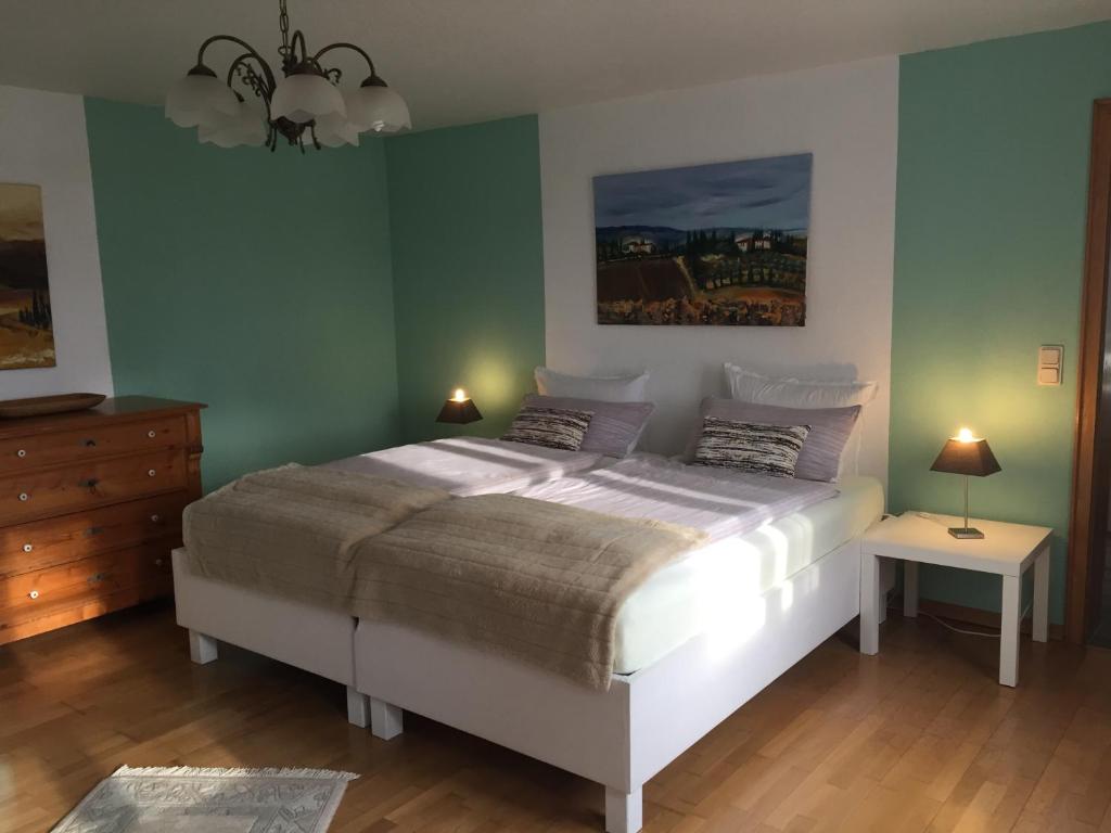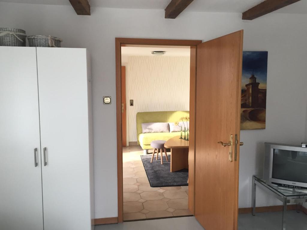 Helle, komplett eingerichtete Wohnung mit sep. Eingang, Parkmöglichkeit und Gartenbereich zum sonnen und spielen, auch Wohnmobilstellplatz möglich ( Wohnung 70 qm, 3 Räume+Küche/Spülmasch. u. renov. Bad) ländlich, jedoch gute Verkehrsanbindung, Bus vor der Haustür, 5 Min. bis zur Autobahn. Die Wohnung verfügt über ein großes Schlafzimmer mit Doppelbett (trennbar) und Zustellbett ist möglich. der zweite Schlafraum hat ein 90er Bett und ein 140er Bett, somit können hier zur Not auch 3 Personen schlafen, im Wohnraum steht ein Schlafsofa, dort könne auch 2 Personen übernachten. 2 sind 2 Fernseher vorhanden. Wir leben in einem 300 Jahre alten sehr historischen Haus, welches seitdem sich in unserem Familienbesitz befindet. Bei Buchungen zwischen 1-3 Nächten berechne ich eine Extragebühr bis 25 Euro je nach Personenzahl.