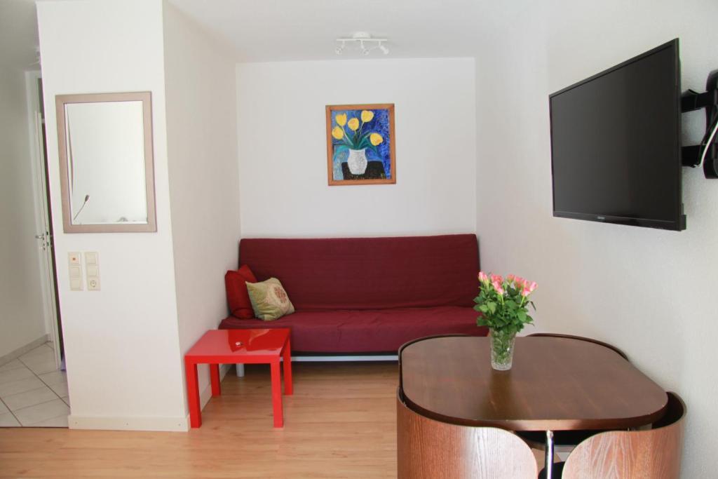 Herzlich willkommen in unserer Ferienwohnung! Sehr gut geschnittene und gemütliche Einzimmerwohnung mit einem Bad und Küche. Das Bad ist mit einer Dusche, WC und Waschbecken ausgestattet, also alles was man braucht.