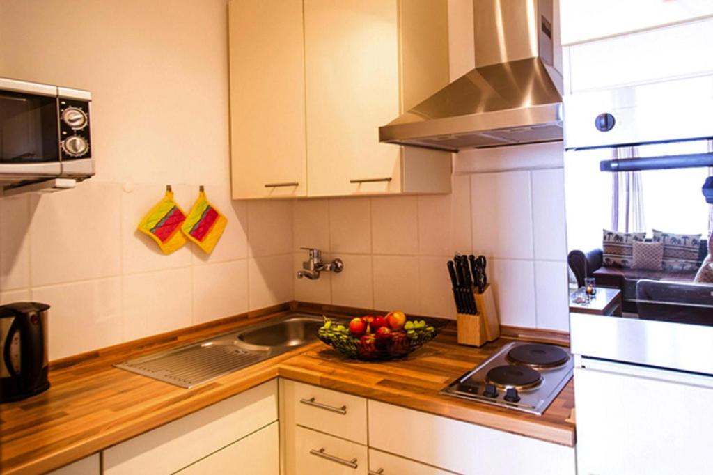 Das Apartment verfügt über eine Küche mit einer Mikrowelle, einem Kühlschrank und einem Wasserkocher. Ein TV ist ebenfalls vorhanden.