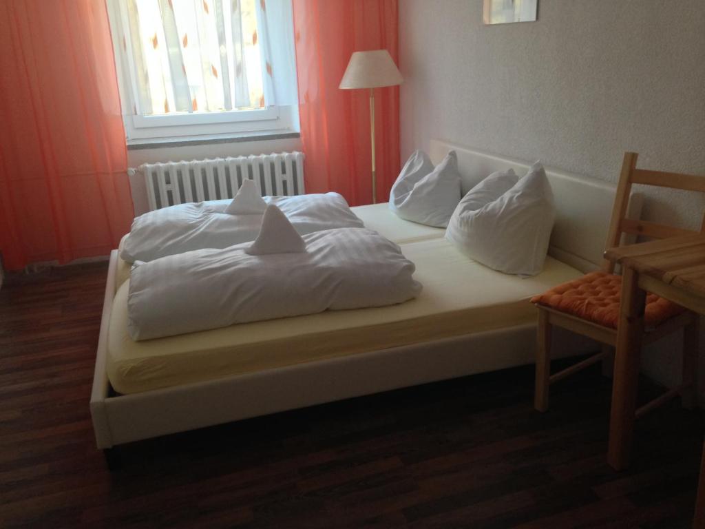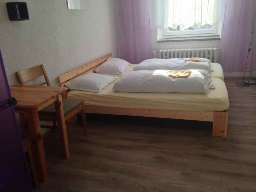 Alle einfachen Zimmer im Hostel im Osterzgebirge verfügen über ein Waschbecken und ein Gemeinschaftsbad auf dem Flur. Handtücher und Bettwäsche werden gestellt.