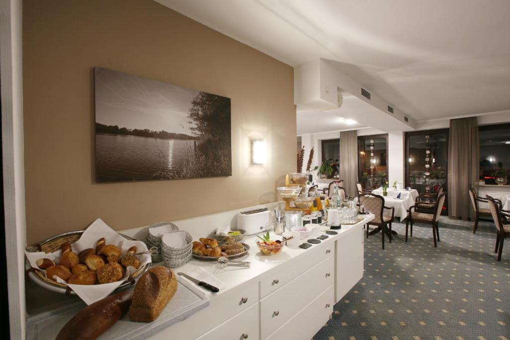 Das Frühstück wird täglich im einladenden Frühstücksraum mit großen Fenstern und einer schönen Aussicht auf die Stadt serviert.