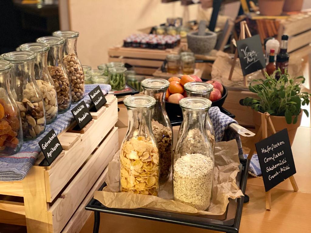 Ein traditioneller Kachelofen sorgt im hellen Frühstücksraum für eine gemütliche Atmosphäre. Beginnen Sie jeden Morgen mit einem Frühstück vom umfassenden Buffett und auch einem kostenlosen Espresso oder Cappuccino.