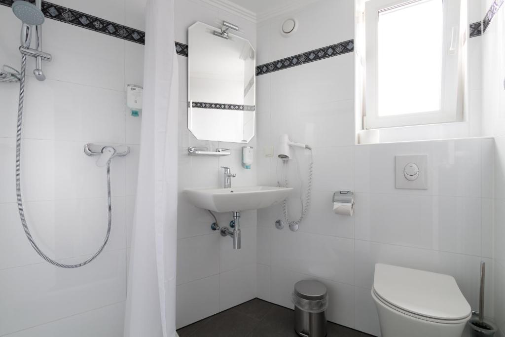 Jedes Zimmer im Hotel Atlanta Darmstadt verfügt über eine Minibar, einen TV und ein Bad mit einem Haartrockner und einem Kosmetikspiegel.