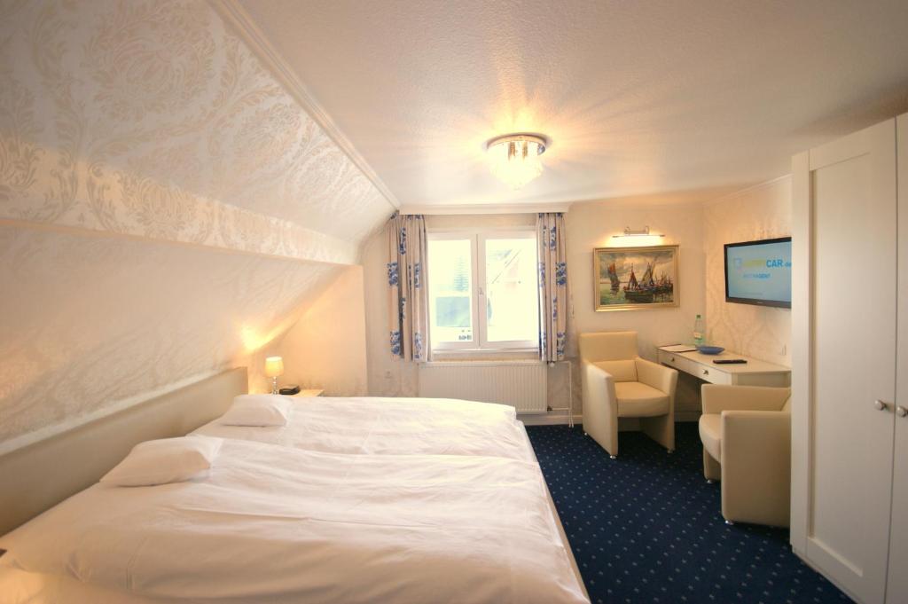 Vorteile: Liebevoll geführtes kleines Hotel, in dem man sich sofort wohlfühlt. Toll ist der Frühstücksraum, in dem man mit Blick auf die Nordsee frühstücken kann. Bei jedem Tisch steht ein Fernglas bereit, um Schiffe und Vögel beobachten zu können.