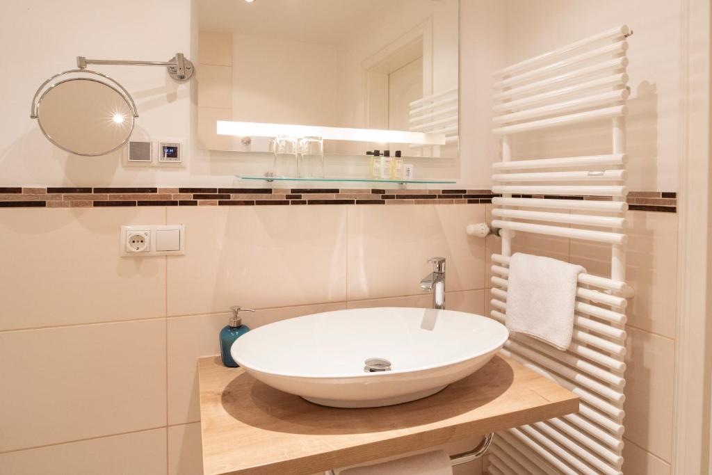 Die im Landhausstil gestalteten Zimmer im Hotel Berlin Tegernsee verfügen alle über ein eigenes Bad und Kabel-TV.