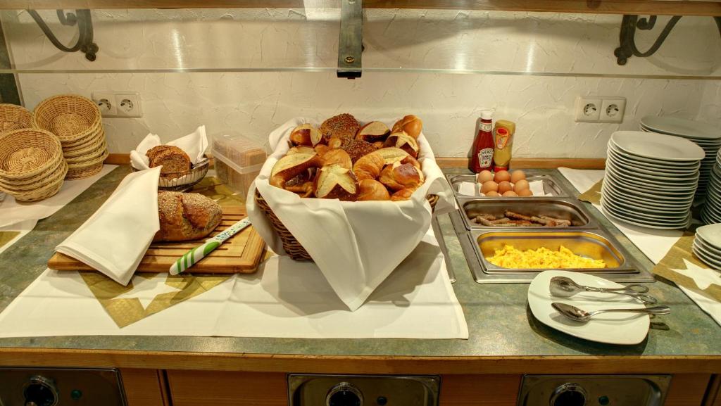 Ein Frühstücksbuffet wird täglich im Hotel Bruker serviert.
