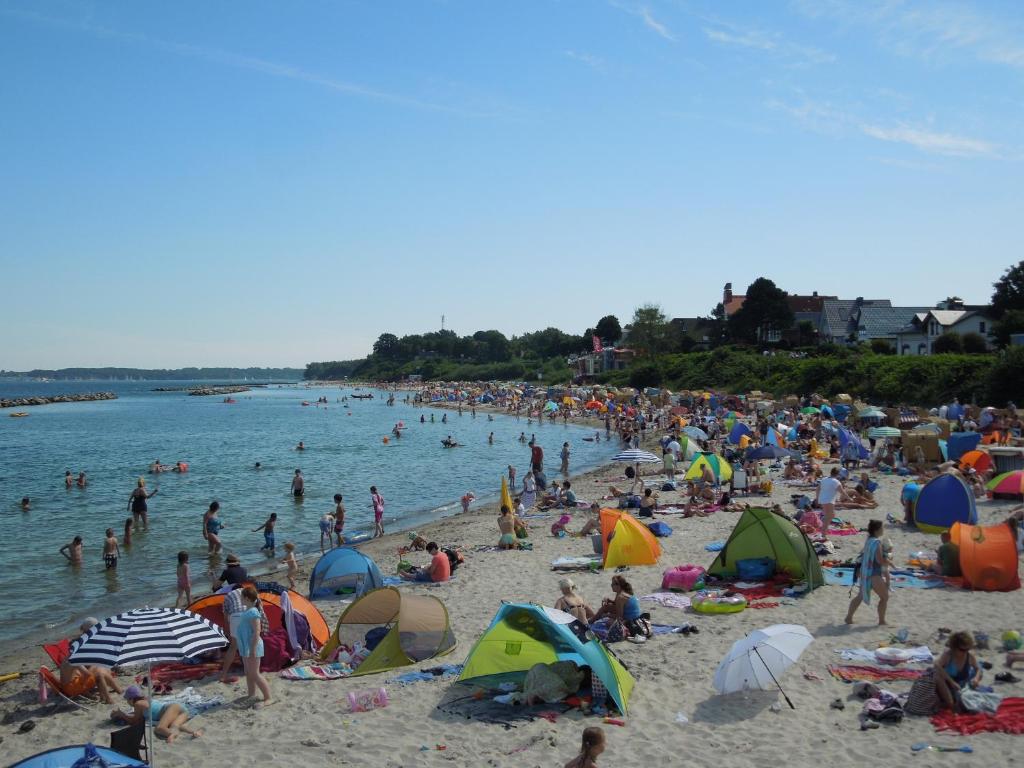 Das Am Strand erwartet Sie mit einem Balkon mit Meerblick, einem Garten und einem Restaurant in Kiel, in der Nähe des Strandes Schilksee und 1,4 km vo
