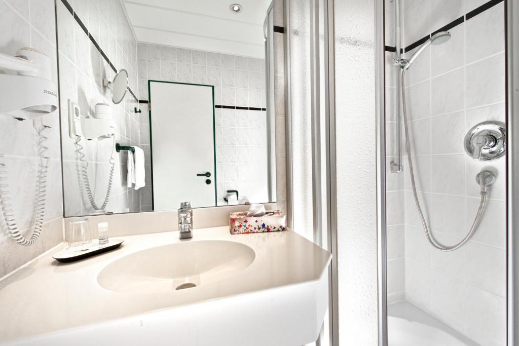 Die Zimmer im Hotel Landhaus Dierkow sind komfortabel eingerichtet und verfügen über einen TV, einen Safe und ein eigenes Bad mit einer Dusche, einem Haartrockner und Pflegeprodukten.