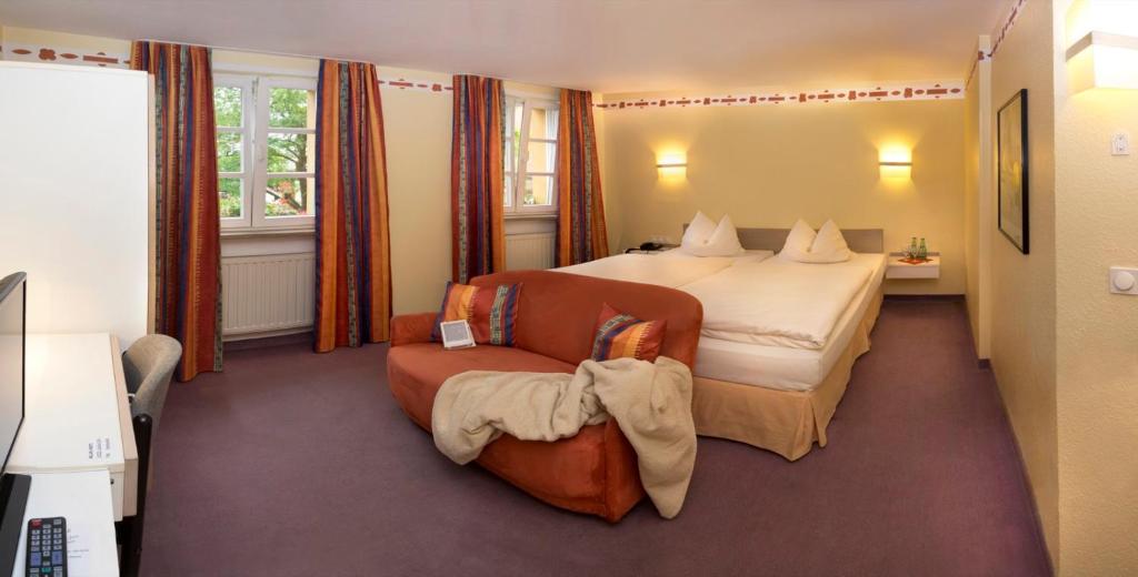 Die hellen Zimmer im Lohmühle Hotel sind mit Kabel-TV, einem eigenen Badezimmer und einer Minibar ausgestattet.