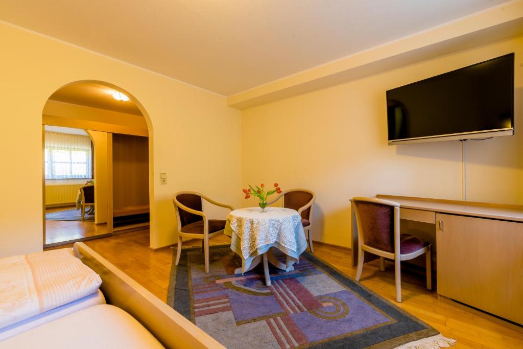Die Zimmer im Hotel Garni sind im modernen Stil eingerichtet und verfügen über Sat-TV und ein eigenes Bad mit einem Haartrockner.