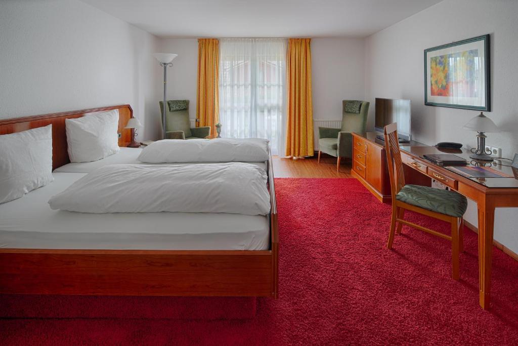Alle Zimmer und Suiten im Hotel Seeperle Langenargen bieten einen gemütlichen Sitzbereich, einen Schreibtisch und ein eigenes Bad. Viele verfügen über einen Balkon mit Seeblick.