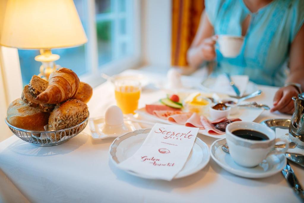 Im Hotel Seeperle mit hauseigener Patisserie beginnen Sie den Tag am Frühstücksbuffet. Die Café-Terrasse mit Panoramablick lädt zum Verweilen bei einem Glas deutschem Wein oder hausgemachtem Kuchen ein.