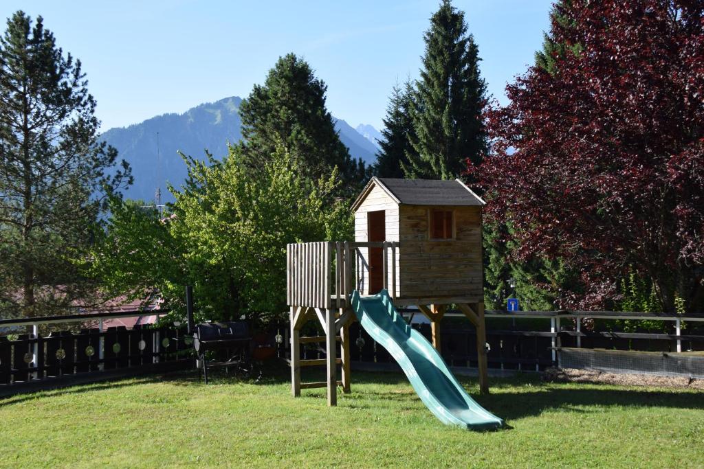 Die kleineren Gäste können sich im großen Garten, im Spielhaus auf der Rutsche sowie mit bunten Spielsachen vergnügen.