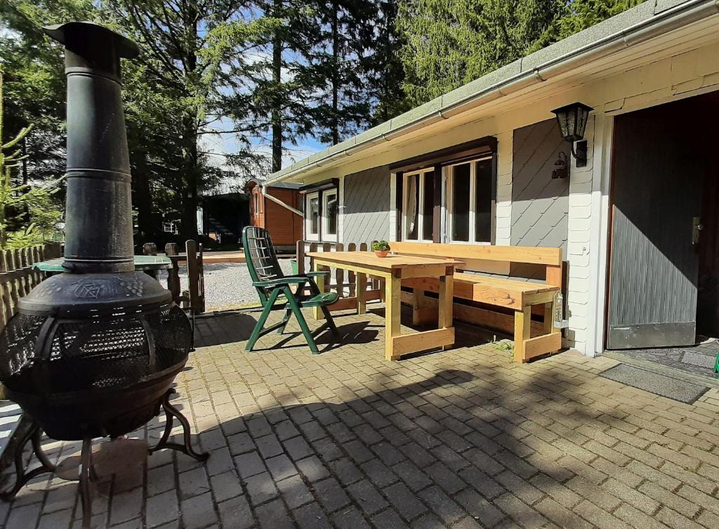 Die Finnhütte auf einem großen Grundstück im Thüringer Wald erwartet Sie mit einer Terrasse und Gartenblick in Ilmenau in Thüringen. Die Unterkunft li