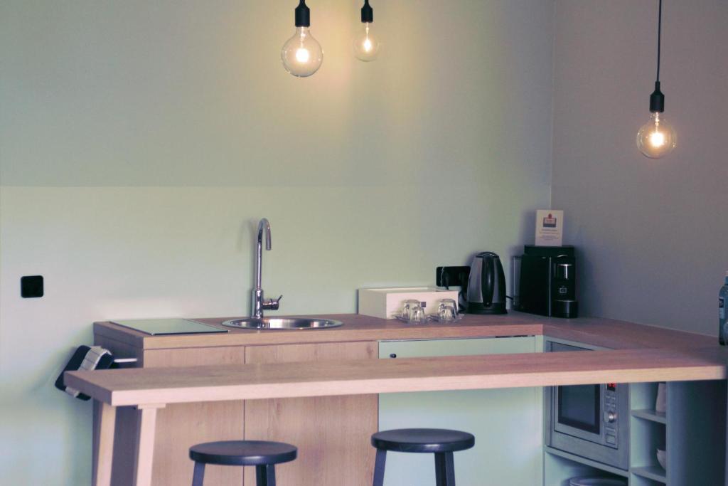 Mit Gartenblick. Die Fewo-Suite "Horizonte I" bietet Unterkünfte mit einer Terrasse und einer Kaffeemaschine, etwa 34 km vom Kieler Hauptbahnhof entf
