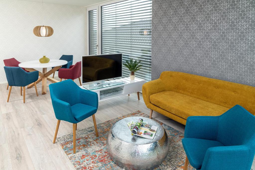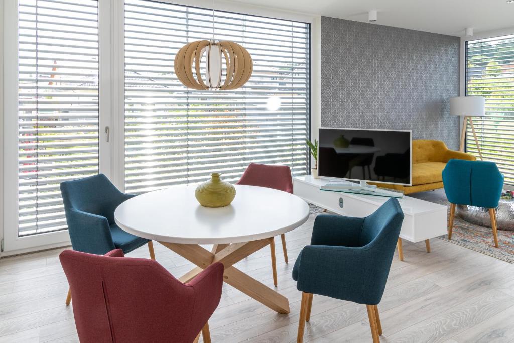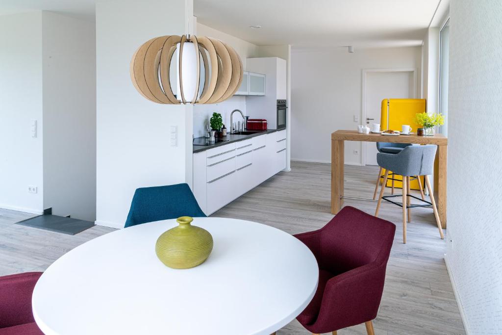 Die Ferienwohnung empfängt Sie mit einem großzügigen Foyer. Die Wohnetage zeichnet sich durch helle Räume mit bodentiefen Fenstern aus. So können Sie von jedem Platz in der Wohnung den Blick nach draußen schweifen lassen. Die Einrichtung greift den skandinavisch modernen Wohnstil auf und setzt gleichzeitig gezielte Farbakzente. Alles in allem werden Sie einen angenehm gehobenen Wohnkomfort genießen. Das Wohnzimmer, das Esszimmer und die Küche bilden eine große Einheit. Damit findet jeder – bei Bedarf – einen Platz für sich und dennoch ist man beisammen und kann miteinander kommunizieren. Auch das Bad zeichnet sich durch viel natürliches Licht aus. Sie haben ausreichend Stauraum für Ihre Waschtasche und all die kleinen Reise-Utensilien. Selbstverständlich gehören die flauschigen Handtücher, ein Fön und die Bettwäsche zur Grundausstattung der Wohnung dazu. Die Ferienwohnung verfügt über 2 Schlafzimmer; beide Schlafzimmer sind jeweils mit einem großen Doppelbett ausgestattet. Zur Ferienwohnung gehört außerdem ein Kellerraum, hier können Sie z.B. Ihre Koffer, Fahrräder oder Ski abstellen.