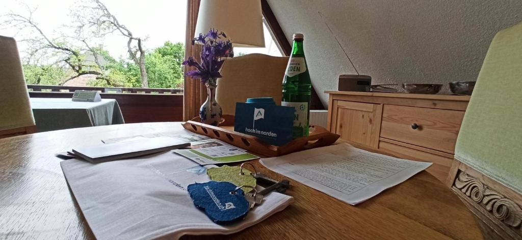 Featuring garden views, Ferienwohnung Klintum provides accommodation with a terrace and a kettle, around 3.2 km from Archaeological monument in Borgsu