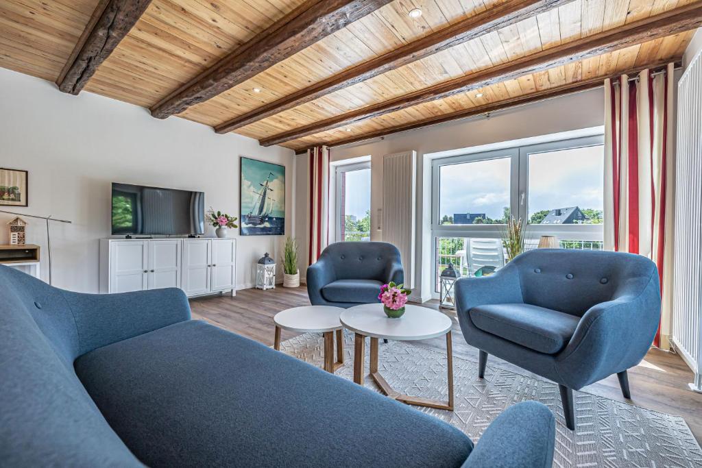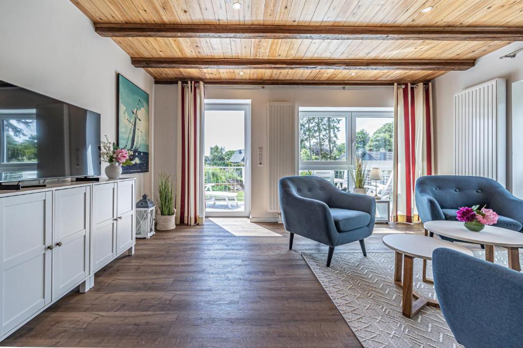 Located in Harrislee, 1.1 km from Grenz-Pavillon Anna Poetzsch, wunderschöne Wohnung direkt am Strand offers a living room with a flat-screen TV. Gues
