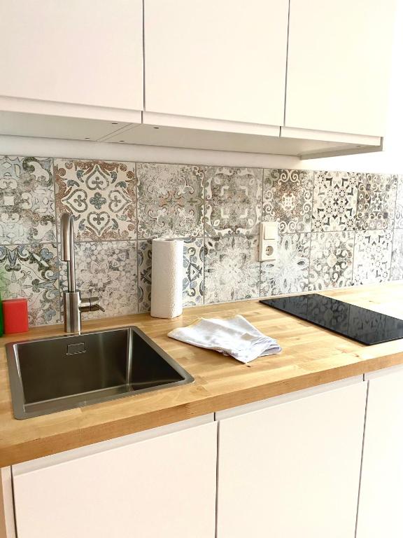 Das Apartment verfügt über 1 Schlafzimmer, 1 Bad, Bettwäsche, Handtücher, einen Flachbild-Kabel-TV, eine voll ausgestattete Küchenzeile und eine Terrasse mit Gartenblick.