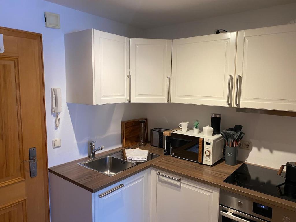 Dieses Apartment verfügt über 1 Schlafzimmer, einen Flachbild-TV und eine Küche mit einer Mikrowelle und einem Kühlschrank. Handtücher und Bettwäsche werden gestellt.