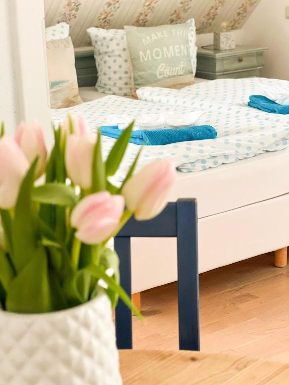 Es war einmal ein Dorf auf einer schönen Insel, die im blauen Meer lag. In diesem Dorf stand ein schönes Haus, welches Kornmühle genannt wurde. Die Kornmühle hatte 2 Ferienwohnungen. Die Ferienwohnungen wurden Amalia und Gabi genannt. Gabi verfügte über 35m² Wohnraum. Aufgeteilt in Schlafzimmer mit einem Doppelbett, welches auch getrennt werden kann und ein Einzelbett. Eine Wohnstube mit TV, Küche, Bad mit Dusche und 5G Internet. Ein Märchen? NEIN!! Überzeugen sie sich wir freuen uns auf sie.