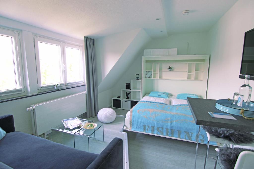 Unser komplett neu saniertes, sonniges 1-Zimmer-Appartement „Kuschelkajüte“ ist 24m² groß und liegt in der Straße "Strandredder" nur ca. 150m vom Travemünder Kurstrand entfernt. Das Appartement ist extrem ruhig und trotzdem zentral im alten Kurgebiet Travemündes gelegen. Die Wohnung befindet sich im 2. Obergeschoss eines gediegenen Mehrparteienhauses, welches auf einem 2000m² großem, parkähnlichen Grundstück liegt. Bitte beachten Sie, dass diese Wohnung nur über Treppen erreichbar ist, ein Fahrstuhl ist im Haus nicht vorhanden. Damit Sie sich ganz wie zuhause fühlen stellen wir Ihnen gerne die Erstausstattung an Bettwäsche und Handtüchern. Zur wärmeren Jahreszeit kann im Garten eine extra für diese Wohnung angefertigte Holzterrasse mit Strandkorb zum Entspannen, lesen oder sonnen genutzt werden. Der Kultimbiss "Navigator" und die "Süße Seebrücke" mit leckerem, selbstgemachten Kuchem und Eis sind nur einen Steinwurf entfernt. Wir bitten um Ihr Verständnis, dass Kinder unter 14 Jahren und Haustiere in diesem Appartement leider draussen bleiben müssen! Bitte beachten Sie, dass zusätzlich zum Mietpreis eine einmalige Endreinigungspauschale berechnen!