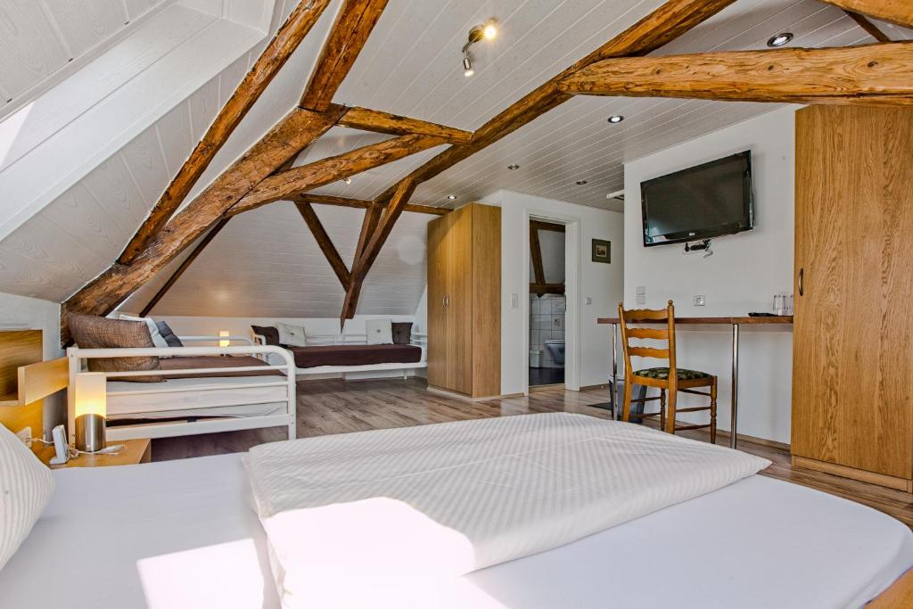 Die modernen Zimmer im Landgasthaus Kreuz beim Tom verfügen alle über einen Flachbild-Sat-TV und ein eigenes Bad.