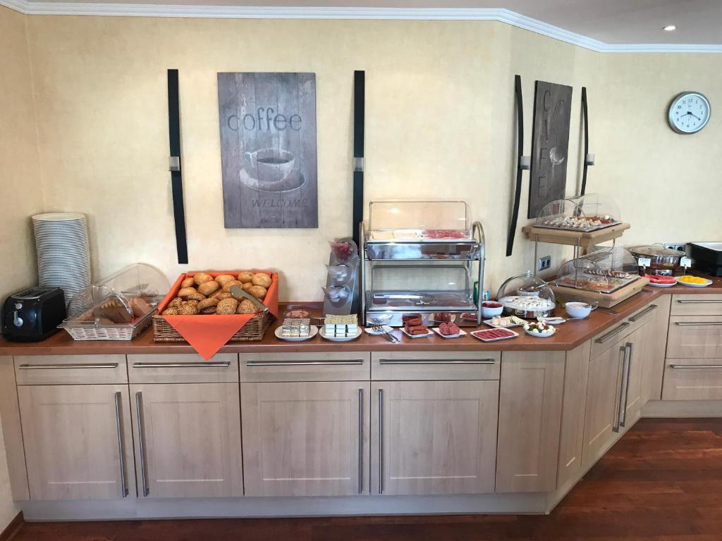 Morgens stärken Sie sich im Landhaus an einem Frühstücksbuffet. Eine lokale Bäckerei liefert frische Backwaren.