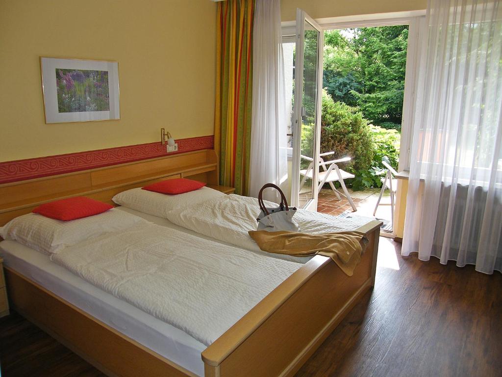 Die Zimmer in der Pension verfügen über einen Schreibtisch, einen Balkon mit Gartenblick, ein eigenes Bad, einen Flachbild-TV, Bettwäsche und Handtücher. Ein Kleiderschrank ist ebenfalls vorhanden.