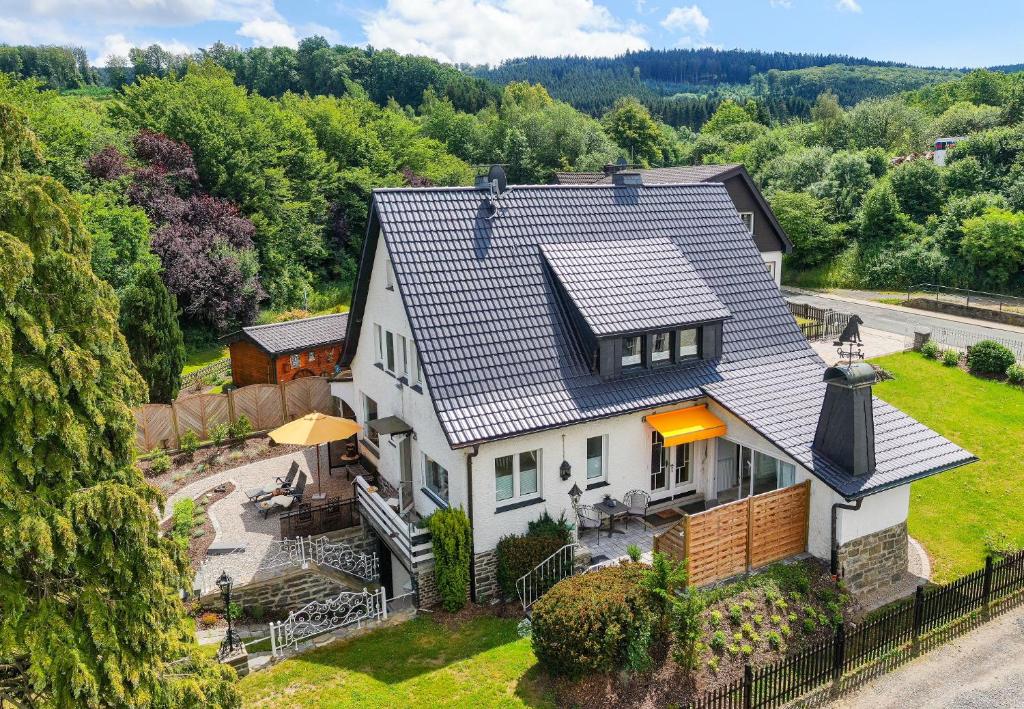 Das liebevoll restaurierte Landhaus Römer mit weitläufiger, eingezäunter Gartenanlage liegt am Ortsrand von Finnentrop - Serkenrode direkt am beliebten Sauerlandradring. Auf 170qm Wohnfläche bietet es 8 Erwachsenen und einem Kleinkind Platz. Der zusammenhängende Wohn- und Essbereich mit Couchgarnitur, Ofen, Smart-TV (SAT) & Stereoanlage und einem großen Tisch sowie die offene, voll ausgestattete Wohnküche lassen keine Wünsche offen. Das Ferienhaus verfügt über 4 Schlafzimmer und 2 Bäder. Zwei Schlafzimmer sind mit hochwertigen Doppel Boxspringbetten, das Dritte ist mit Doppelbett und Kinderbett im Landhausstil und das Vierte ist mit zwei Einzelbetten ausgestattet. Alle Doppelbetten besitzen Bettwäsche in Übergröße. Ein Baby Reisebett befindet sich zusätzlich im Haus.