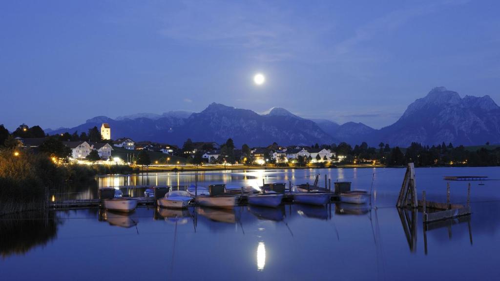 Rund um den Hopfensee liegen die Märchenschlösser Hohenschwangau und Schloss Neuschwanstein. Sie waren Heimat des Märchenkönigs Ludwig II. Er verbachte hier seine Kindheit und erholte sich als Erwachsener von der harten Realität des Staatsgeschäfts in der Einsamkeit der Bergwelt. Der Forggensee ist mit seinen 12 Kilometern Länge und 3 Kilometern Breite der größte See im Allgäu und der fünftgrößte See in Bayern. Auf dem Forggensee ist in den Sommermonaten vom 1. Juni bis zum 15. Oktober auch die beliebte Seeschifffahrt möglich.