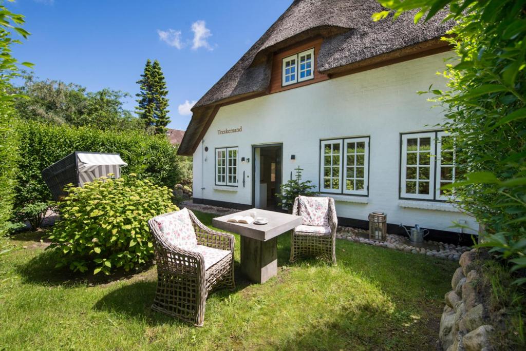 Tinnum, sagt man, ist das Herz der Insel. Privat, ursprünglich, traditionell und liebenswert. TRESKERSAND ist ein Teil dieser Idylle. Ruhig gelegen im südlichen, charmanten Teil von Tinnum, in dörflicher Lage, wo Pferdekutschen durch die Landschaft rollen, die Salzwiesen zahlreiche Rad- und Wandermöglichkeiten bieten und der Weststrand zum Greifen nah ist, finden Sie unser Juwel TRESKERSAND, das wir 2012 zu einem exklusiven Ferienhaus unter Reet für anspruchsvolle Gäste restauriert und saniert haben. Der Deutsche Tourismusverband hat uns dafür mit 5 Sternen belohnt. Edel und stilvoll ausgestattete Ferienwohnungen mit eigenen nach Süden und südwestlich ausgerichteten Gartenanteilen lassen keine Wünsche offen und werden Sie verzaubern. Wer einmal hier war, kommt gerne wieder. Wir freuen uns auf Sie. Ihr wohlerzogener Hund ist uns auf Anfrage ebenfalls herzlich willkommen.