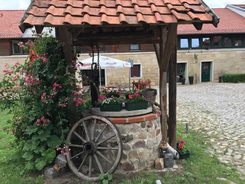 Die Ferienwohnung mit Brockenblick ist ein Apartment mit einem Garten und Blick auf den Innenhof in einem historischen Gebäude in Langenstein, 15 km v