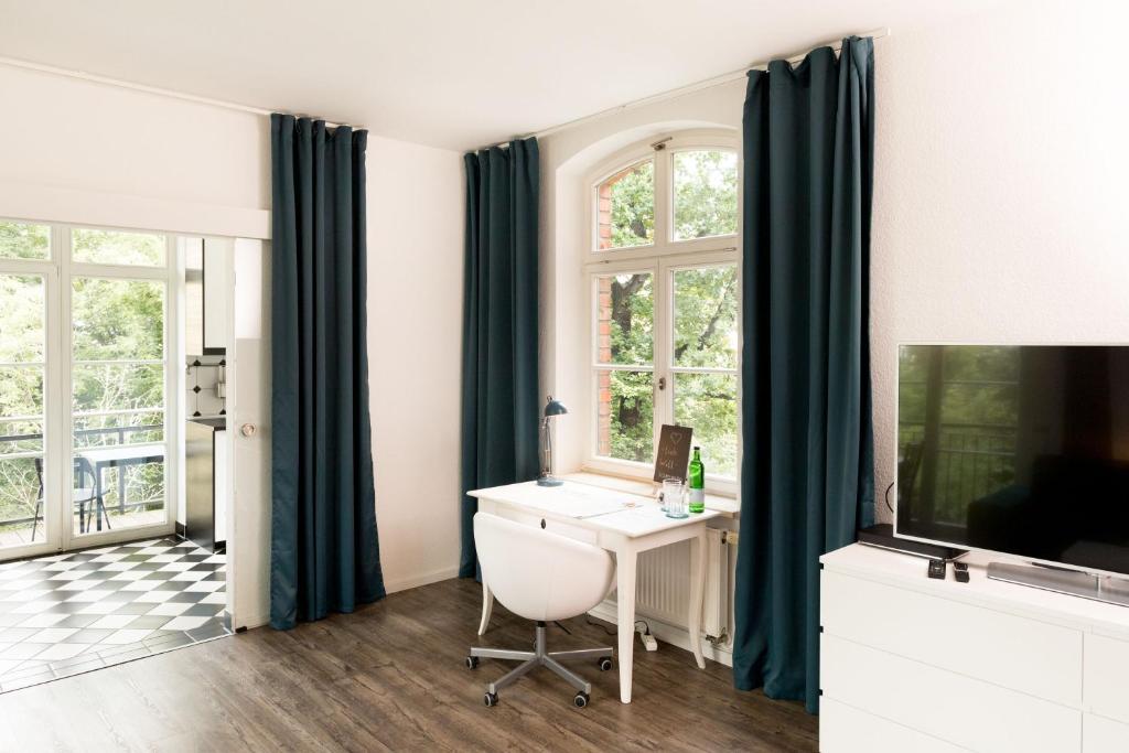 Die berühmte Leipziger Innenstadt mit Thomas- und Nikolaikirche, Gewandhaus und Alma Mater, Auerbachs Keller und historischen Einkaufspassagen erreichen Sie durch den Park fußläufig in 15 Minuten oder mit in der Könneritzstraße verfügbaren Leihfahrädern (Next-Bike) in fünf Minuten. Die RB-Arena, das Stadion des Fußballbundesligisten RB Leipzig, und die Arena Leipzig, die Halle, in der u.a. der Handballbundesligist DHfK Leipzig seine Heimspiele austrägt, sind fußläufig 20 bis 25 Minuten und mit der Straßenbahn ca. zehn Minuten entfernt. Zur Straßenbahnhaltestelle Holbeinstraße (Linien 1 und 2) in der Könneritzstraße benötigen Sie zu Fuß zwei Minuten und zur Straßenbahnhaltestelle Nonnenstraße (Linie 32) in der Karl-Heine-Straße sind es drei Fußminuten. An der Haltestelle Holbeinstraße gibt es auch Leihfahrräder (Next-Bike). In den umliegenden Anwohnerstraßen ist das Parken kostenlos. Es ist zwar nicht leicht, einen freien Parkplatz zu finden, aber vor 17:00 Uhr gut möglich. Auf Wunsch können wir Ihnen gegen Gebühr unseren privaten Stellplatz im Nachbargrundstück überlassen.