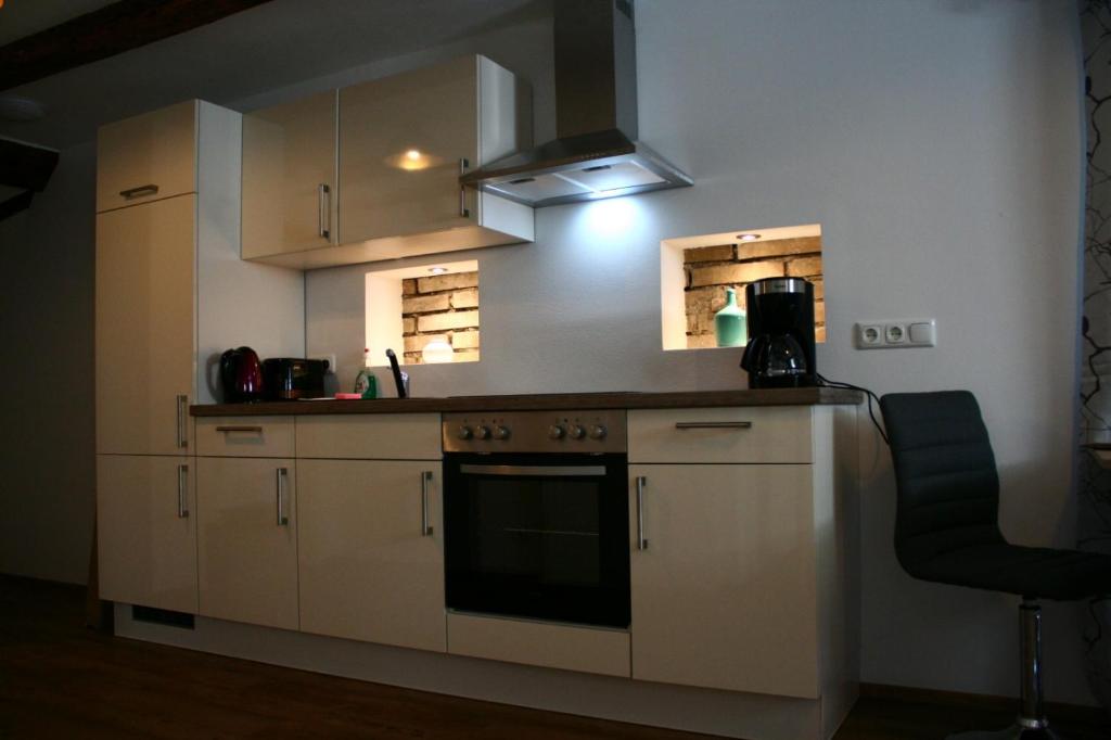 Manche Unterkünfte umfassen eine Küche mit einem Kühlschrank, einem Backofen und einem Toaster.