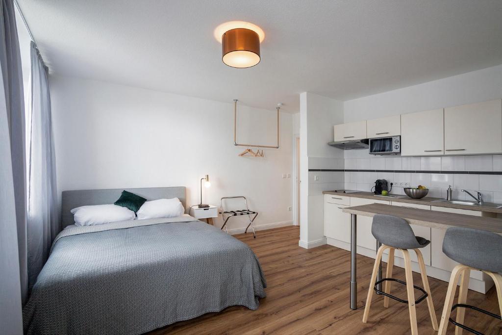 • Kontaktlos + digitaler Check-in/out: Keine physische Interaktion vor Ort; kein Personal; Check-in/out über unser digitales Zugangssystem; automatisierte Rechnungsstellung // • Höchste Hygienestandards in allen Reinigungsschritten: Oberflächen, Türgriffe, Tastaturen, Lichtschalter, Küchenutensilien und vieles mehr // • Reinigungsmittel auf Anfrage: Diverse Reinigungsmittel für die eigene, zusätzliche Zimmerreinigung während Deines Aufenthalts // • Professionelle Reinigung: Bettwäsche & Handtücher werden professionell im desinfizierenden Waschverfahren gereinigt; Angemessene Schulung unserer Reinigungspartner // • Deine Sicherheit: Wir stellen Dir während Deines Aufenthalts eine Möglichkeit zur Händedesinfektion zur Verfügung // • Stornierungsbedingungen: Erstattungsfähige Tarife buchbar bis 2 Tage vor Ankunft // • Bargeldlose Zahlung: Alle Zahlungen können während deiner Buchung per Kreditkarte getätigt werden // • Voll ausgestattete Küche: Bereite Deine Mahlzeiten in Deiner voll ausgestatteten Küche zu & genieße kostenlosen Kaffee und Tee // • Arbeitsumgebung: Kostenloses High-Speed WLAN, Arbeitstische mit ausreichend Platz & ein Smart-TV für Deine Videoanrufe und Präsentationen