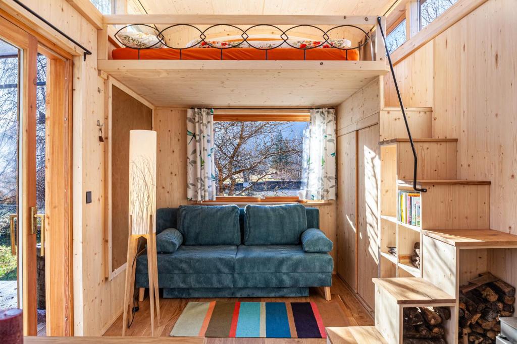 Das gemütliche Tiny House "Loft Süd '' auf dem Grundstück des Hauseigentümers in Unterammergau und wurde ebenfalls vom Hauseigentümer selbst entworfen. Durch seine ruhige Lage und die Nähe zu den Alpen und dem berühmten Schloss Neuschwanstein ist es ein idealer Ausgangspunkt für Ferien in den bayerischen Alpen. Die 26 m² große Ferienwohnung besteht aus einem Wohnbereich mit Holzofen, einer Küchenzeile, 2 Doppelbetten und einem Einzelbett sowie einem Badezimmer und bietet somit Platz für 4 Personen. Zu den zusätzlichen Annehmlichkeiten gehört WLAN. Der wunderbare Außenbereich verfügt über eine private, überdachte Terrasse, auf der Sie den Tag mit Frühstück und einem herrlichen Blick auf die umliegenden Berge beginnen können, sowie über einen gemeinschaftlichen Garten mit Strandkörben, frischem Gemüse, einem Spielplatz und einem Barbecue, auf dem Sie Ihre eigenen leckeren Abendessen zubereiten können. Ein Supermarkt, eine Bäckerei und mehrere Cafés und Restaurants sind zu Fuß in 10 Minuten (750 m) zu erreichen, nach einem Gehminute ins Zentrum von Unterammergau. Es gibt auch einen Bahnhof (6 Gehminuten oder 550 m), von dem aus Sie Oberammergau und den berühmten Bergort Garmisch-Partenkirchen erreichen können. Nach einer 35-minütigen Fahrt (37 km) können Sie im klaren blauen Wasser des Kochelsees baden. In 43 Autominuten (42 km) können Sie das berühmte Schloss Neuschwanstein besichtigen, das direkt am Alpsee liegt, und nach 43 Autominuten (33 km) erreichen Sie die Zugspitzbahn. Sie bringt Sie auf Deutschlands höchsten Berggipfel mit spektakulärer Aussicht auf die umliegenden Alpen. Die nächstgelegenen Skigebiete sind mit dem Auto in 6-10 Minuten erreichbar (3,7-8 km). Parkplätze stehen auf dem Grundstück zur Verfügung. Bettwäsche und Handtücher sind im Preis inbegriffen. Ein Haustier ist gegen einen Aufpreis von 10 € pro Aufenthalt erlaubt. Bitte füllen Sie das Bookiply Kontaktformular, das Ihnen per Email gesendet wurde, vollständig inklusive Ihrer Adresse aus. Damit helfen Sie dem Gastgeber Ihren Aufenthalt optimal vorzubereiten. Die Kurtaxe von 1,50€ pro Nacht pro Person ist vor Ort an den Gastgeber zu bezahlen.