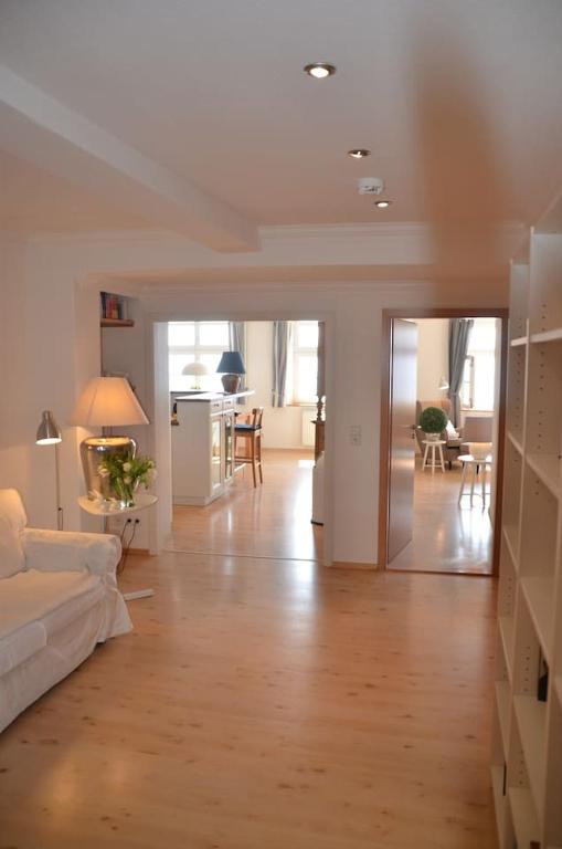 Seefeeling pur. Besser lässt sich dieser Ort nicht beschreiben. In der lichtdurchfluteten Wohnung genießen Sie das Gefühl direkt über dem See zu schweben. Die im modernen skandinavischen Stil eingerichtete Wohnung liegt direkt an der Uferpromenade, am sogenannten Landungsplatz, im Herzen von Überlingen. Vor der Tür erwarten Sie alle Hotspots der Stadt: Restaurants, Kinos, Strandbäder, Einkaufsmöglichkeiten und die Schiffsanlegestelle sind zu Fuß erreichbar. Die Wohnung im zweiten Stock des wunderschön sanierten Altbaus bietet mit ca. 100 qm Wohnfläche ausreichend Platz für vier Personen und ist bequem mit dem Aufzug zu erreichen. In dem ehemaligen Deutschritterordenshaus befand sich einst die Verwaltung der Bodenseeinsel Mainau – heute erfreuen sich die Bewohner des denkmalgeschützten Hauses an dem atemberaubenden Blick auf die Insel Mainau. Den See auf der einen Seite und die malerische Altstadt auf der anderen Hausseite: Hier befindet sich direkt die Hofstatt, ein großer Platz an dem mittwochs und samstags der regionale Wochenmarkt stattfindet, der zum Bummeln und Verweilen einlädt. Ein Ort zum Entspannen.