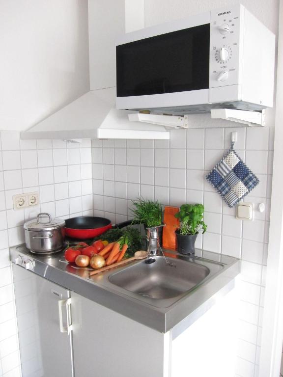 Das Apartment verfügt über 1 Schlafzimmer, einen TV und eine voll ausgestattete Küchenzeile mit einem Geschirrspüler und einer Mikrowelle.