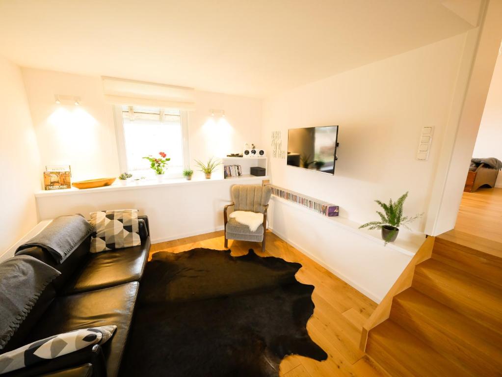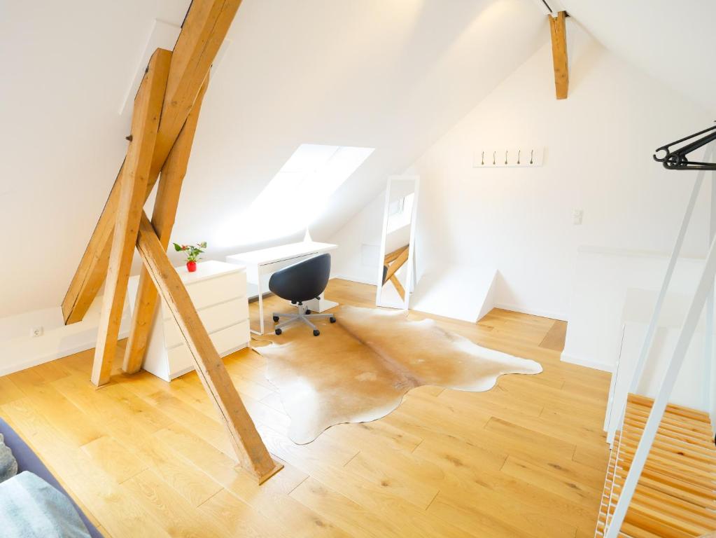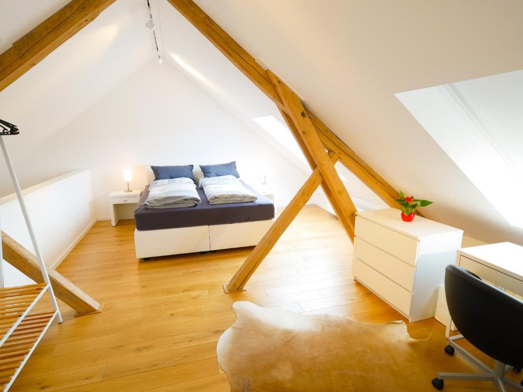 Die in 2015 fertiggestellte charmante Ferienwohnung liegt im 1. Stock eines Fachwerkhauses und hat einen separaten Eingang über eine Treppe in der Scheune. Diese Ferienwohnung verfügt über eine voll ausgestattete Küchenzeile mit Backofen, Mikrowelle und Spülmaschine und hat ein Schlafzimmer auf der Empore mit einem Doppelbett und ein Einzelzimmer neben dem Ess-/Wohnbereich. Darüber hinaus verfügt dieses Apartment über einen Flat-Screen-Fernseher. Kostenloser Das Bad hat eine barrierefreie Dusche sowie ein separates WC.