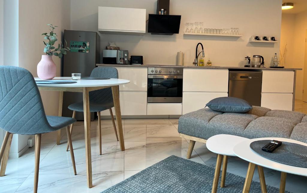 Alle Wohneinheiten verfügen über einen Flachbild-TV, ein Wohnzimmer mit einem Schlafsofa, eine gut ausgestattete Küche mit einem Essbereich und ein eigenes Bad mit einer Dusche und einem Haartrockner. Ein Geschirrspüler, eine Mikrowelle, ein Kühlschrank, ein Wasserkocher und eine Kaffeemaschine sind ebenfalls vorhanden.