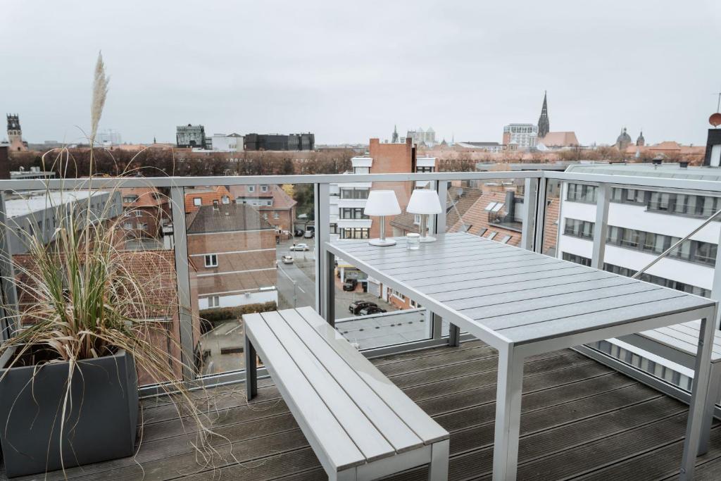 Mit einer Terrasse und einer 24-Stunden-Rezeption erwartet Sie das XL-City-Apartment mit Terrasse 101 m2 in idealer Lage in Münster, 300 m vom Hauptba
