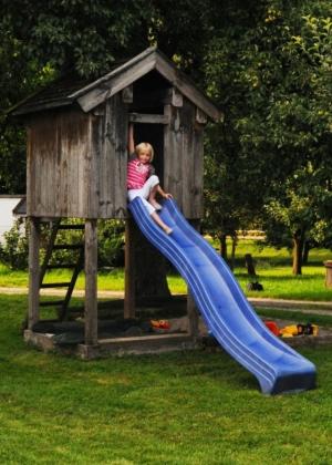 Der Bauernhof bietet einen Garten und einen Kinderspielplatz.